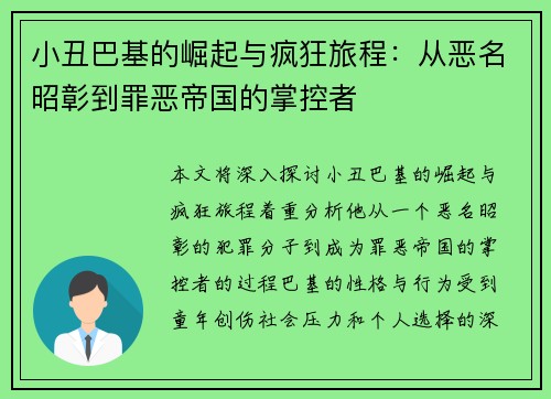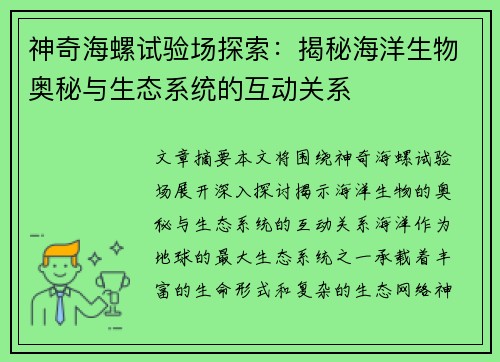 《金银岛探秘:揭开失落宝藏背后的历史谜团与冒险传奇》是一篇探索经典小说《金银岛》的历史背景、文学价值、文化影响以及现实中的探险故事的文章。本文将从四个方面展开详细的分析:首先,解析《金银岛》的历史背景及其与海盗文化的关系;其次,探讨小说中的人物形象与冒险精神;第三,分析小说对后世文学与电影的影响;最...